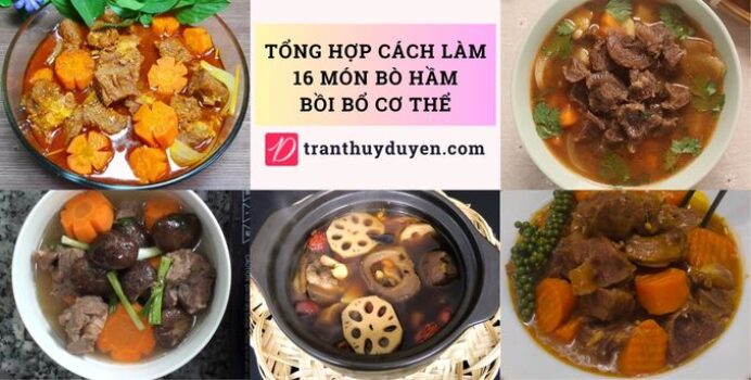 Thịt bò thường được hầm với các nguyên liệu như khoai tây, cà rốt, hành tây, nấm, đậu, thuốc bắc, tiêu xanh, dưa chua, bí đỏ, sả, đu đủ,… Bài viết này sẽ hướng dẫn cách làm chi tiết của 16 món bò hầm bổ dưỡng cho cơ thể, đó là: